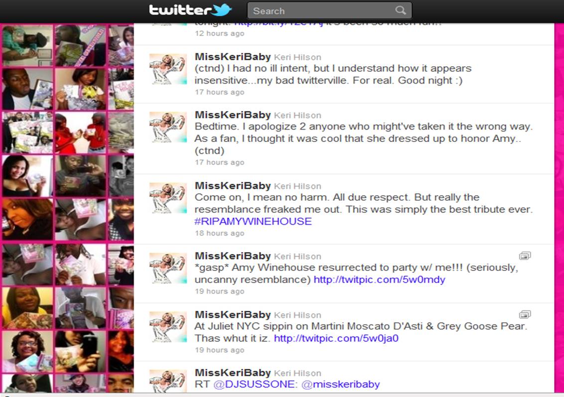 Keri Hilson outrages fans, she Tweeted a Pic of An Amy Winehouse Look Alike