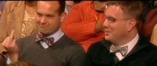 During Monday’s episode of “The View” Barbara was running things. She took over Whoopi’s chair as Whoopi had the day off and thus was in charge of topic transitioning. She switches gears from telling everyone that the sexual drive doesn’t’ end at 40 (in reference to Dick Van Dyke getting Married) to the trend of forgetful parents. During the transition she asked the audience if anyone has ever forgotten their children when she notices someone nodding their head. The camera man pans the audience and you see three guys in bow ties. The guy on the left then decides to flip Barbara Walters the Bird! WTF!