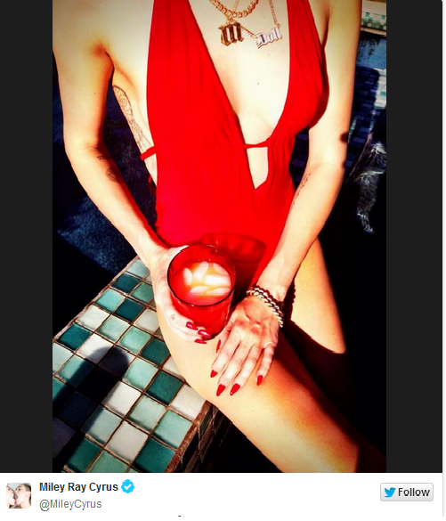 With highs still climbing into the 80s, it’s still perfect swimming weather out in the land of crushed dreams. Miley Cyrus took full advantage of the nice weather and posted the photo you see down below…