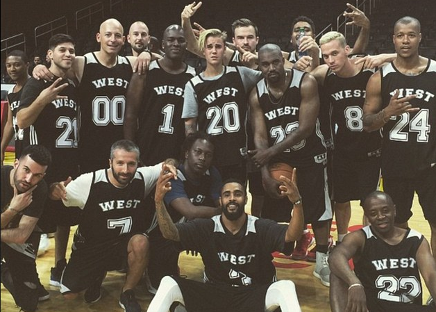 As we mentioned above, Justin Bieber was invited to this basketball party. And of course, he tried to steal some of the attention away from Kanye West. He posted the photo you see below to his Instagram account. As you can clearly see, he’s the only douchebag lifting up his shirt in the photo.