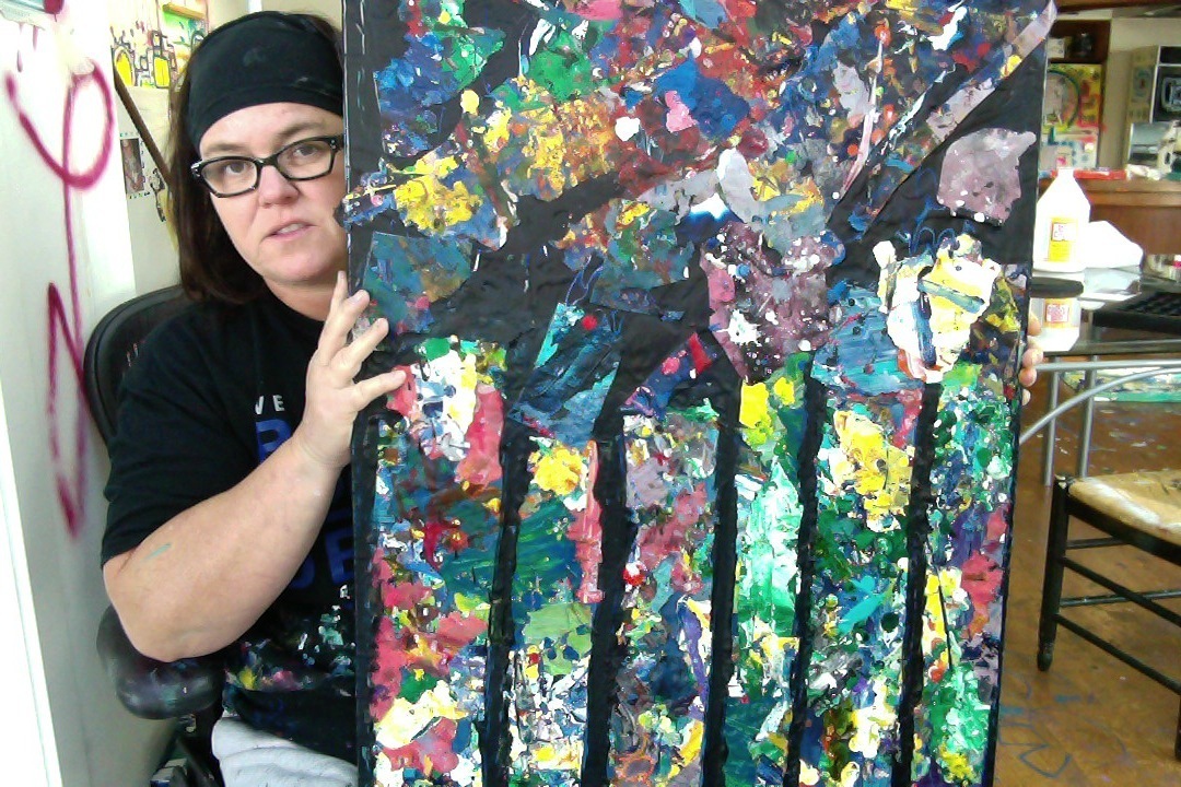 She has a whole house which is just for her arts and crafts. She bought the next door neighbor’s house. She goes and spends all day down there,
