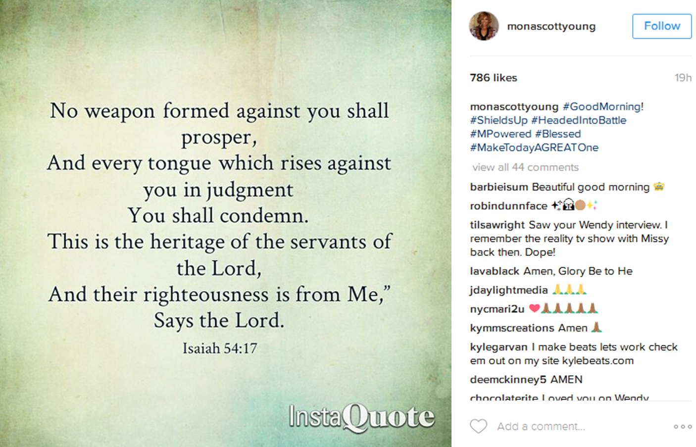 Tough words to live by in this day of social media, especially if you are a gossip blogger. BTW – Mona did have a response, but as you can imagine, she took the subliminal high road.